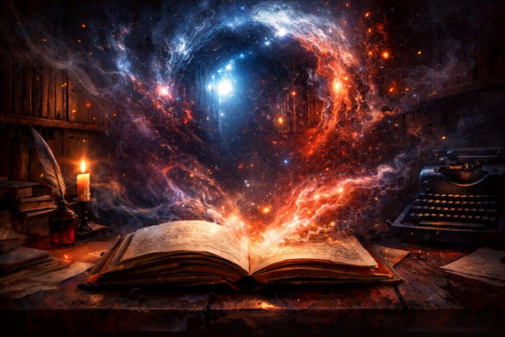 His writing blends grounded emotion with big cinematic moments — the kind of stories meant for readers who love mythology with teeth, heroes who bleed, and stakes that actually matter. When he’s not worldbuilding or editing at ungodly hours, he’s recording episodes, designing insane merch ideas, or researching something wildly nerdy “for the podcast.”